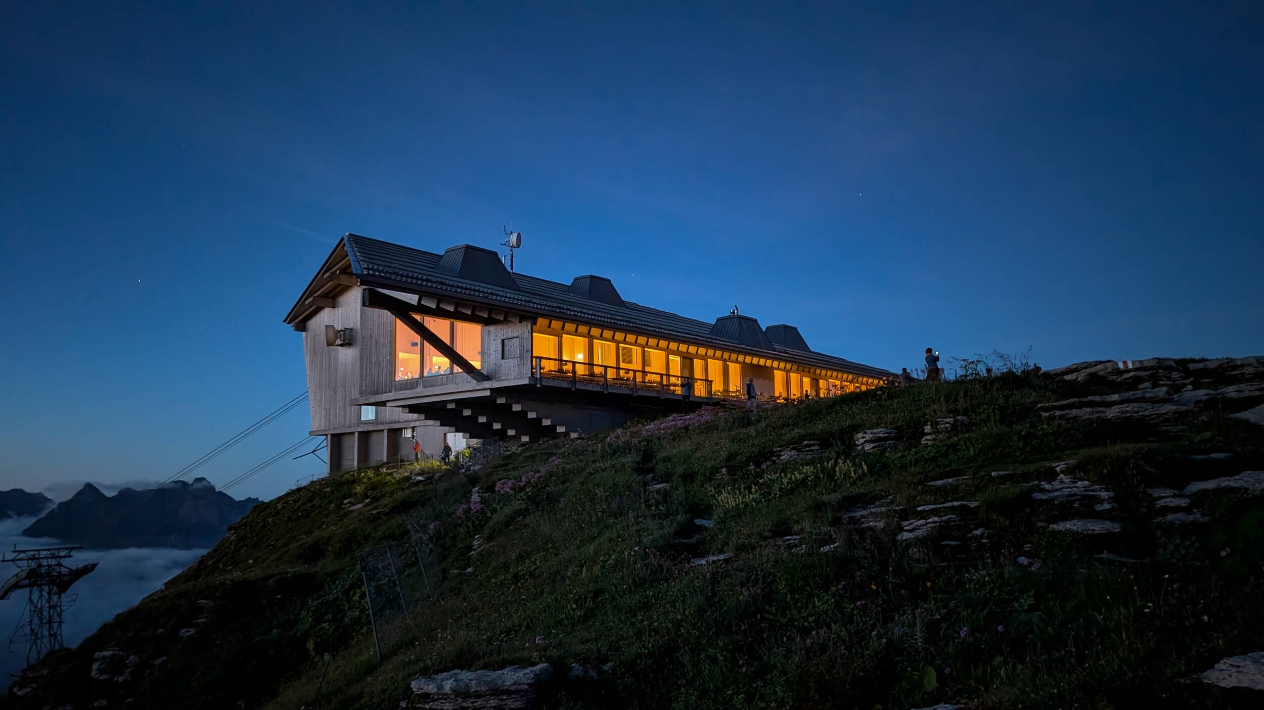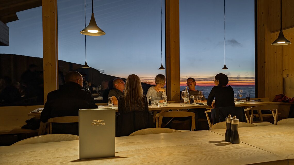 Für den Aufenthalt draussen empfehlen wir gutes Schuhwerk sowie dem Wetter angepasste Kleidung. Die Bergfahrt ist ausschliesslich für Gäste mit gebuchtem Abendessen möglich.