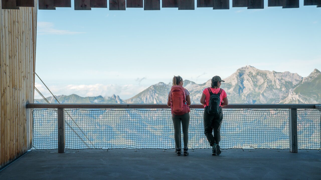 Das Gipfelgebäude fügt sich sanft in die Bergwelt des Toggenburgs ein und betont die einmalige Silhouette der Churfirsten. Es geht eine Symbiose mit dem Berg ein und setzt diesen für den Besucher ins Werk.